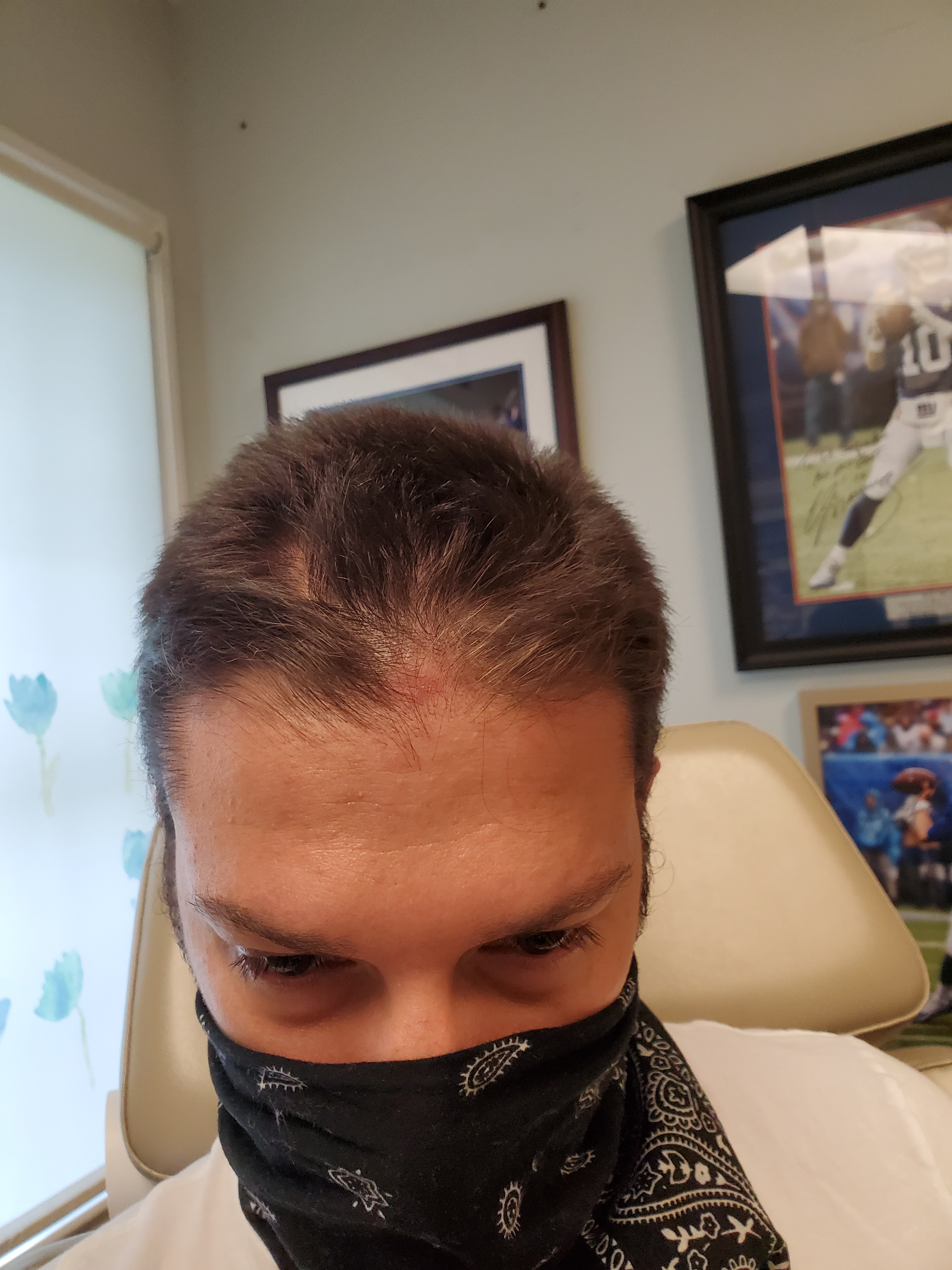 I only applied to the huge patch/Friar Tuck spot in the front of my head and (very occasionally) on the larger patches at the back of my head. Here’s the huge patch which has been growing and actually changing in size over 2018/19